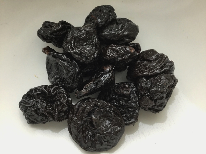 - Spoel de pruimen grondig af en snijd ze in kleine stukjes.