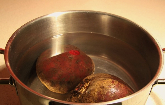 - Laten we eerst de bieten aan de kook brengen, want het duurt 50-80 minuten, afhankelijk van de maat die je hebt.