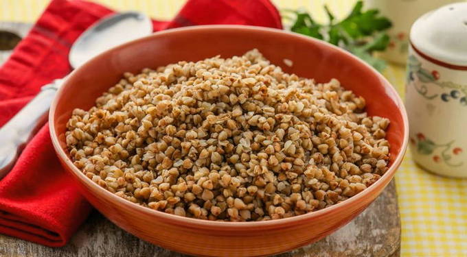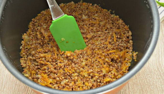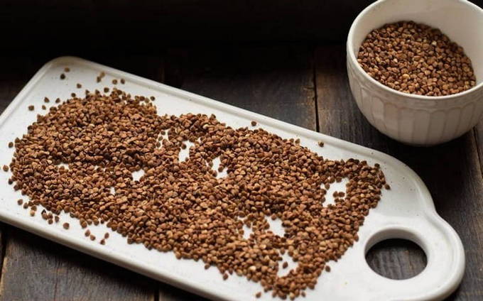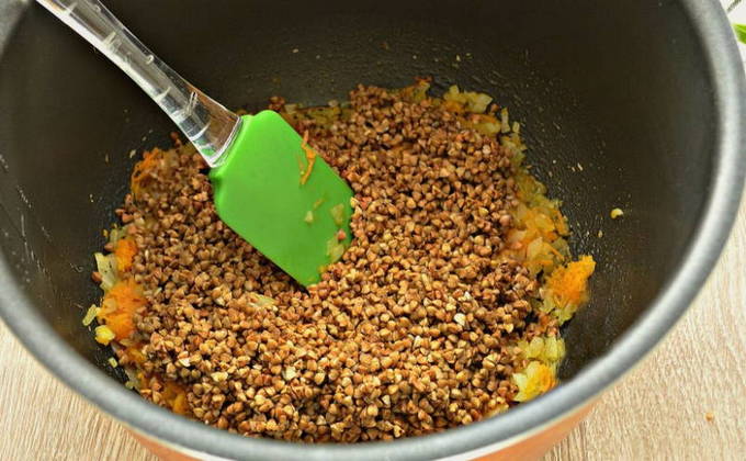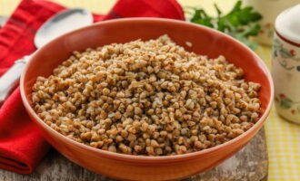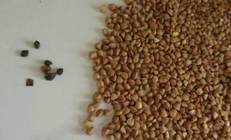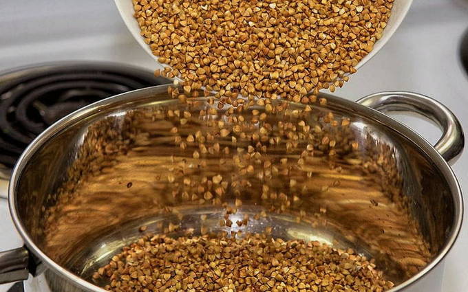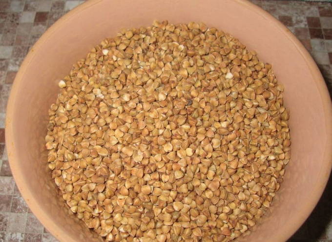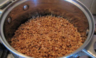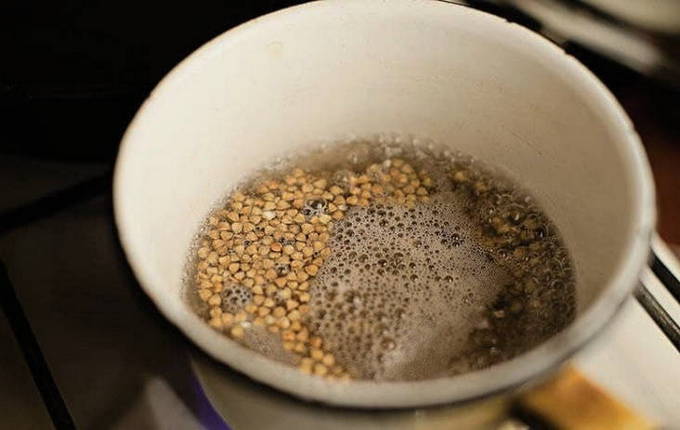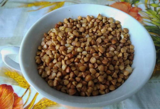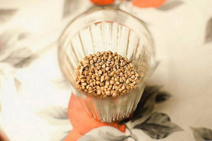 - Laten we de benodigde hoeveelheid boekweit meten.
