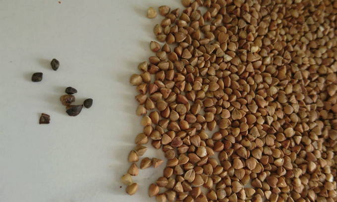 - Eerst moet je de schil en het puin zorgvuldig uitzoeken. Om dit te doen, kan het product op een vlakke ondergrond worden gegoten.