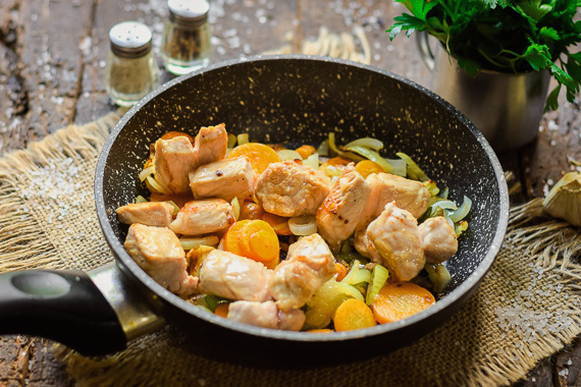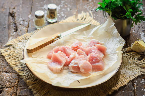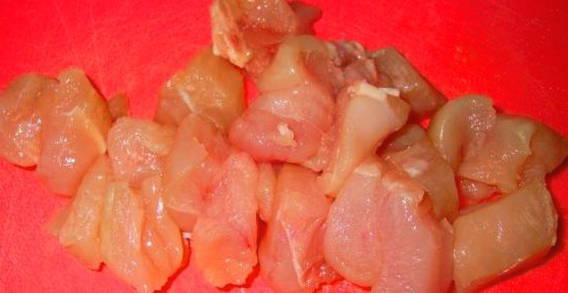 - Ontdooi de kipfilet vooraf en snijd in kleine stukjes.