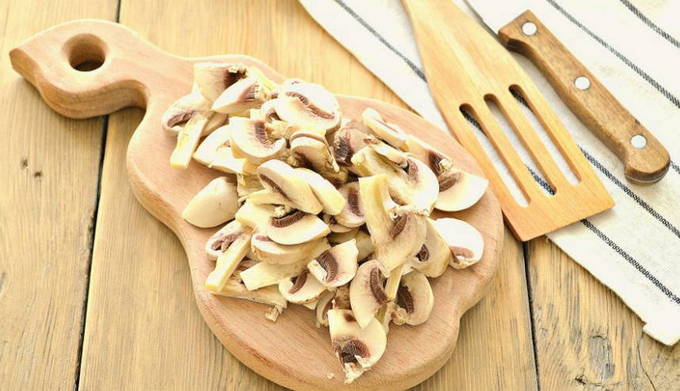 - We wassen de champignons en snijden ze in kleine stukjes.