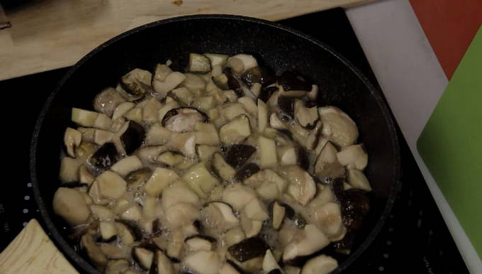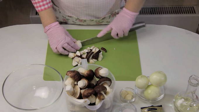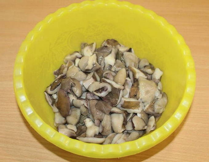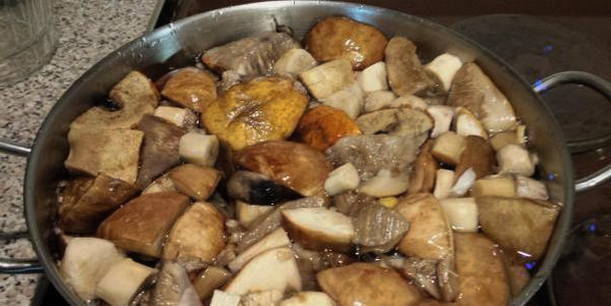 - Sorteer de champignons, schil, snijd en vul met water. Voeg wat zout toe en kook 20 minuten.