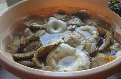 - Sorteer de melkpaddenstoelen, was en snijd ze in stukjes. De melkpaddenstoelen moeten eerst een dag in water geweekt worden om van de bitterheid af te komen.