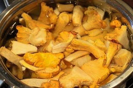 - Sorteer de cantharellen, maak ze schoon van vuil en was ze.