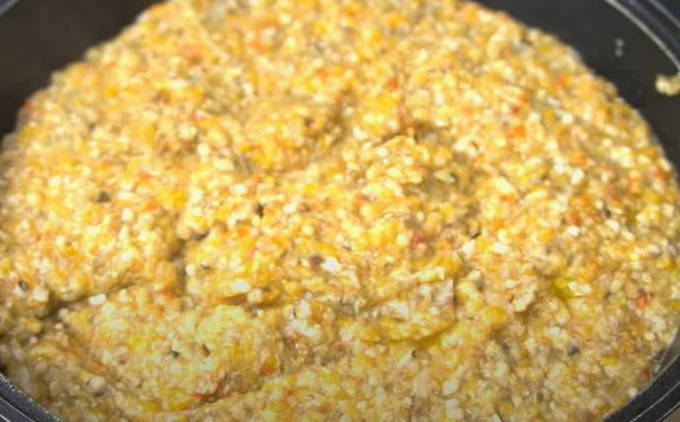 - Voeg 15 minuten voor het koken gehakte knoflook en azijn toe, roer, laat een minuut sudderen en haal de kom van het vuur. Spreid de kaviaar uit in gesteriliseerde potten, rol op met gesteriliseerde deksels en bewaar in de kelder.