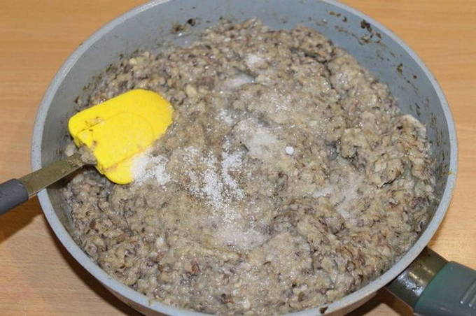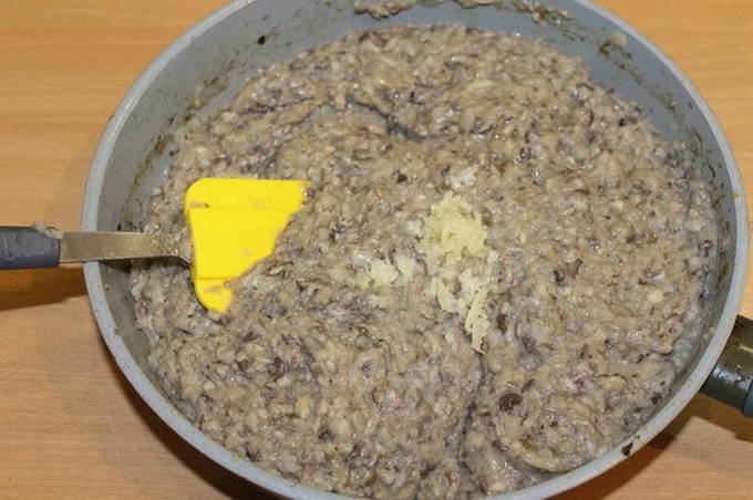 - Scrol gekookte champignons door een vleesmolen of hak ze in een blender.