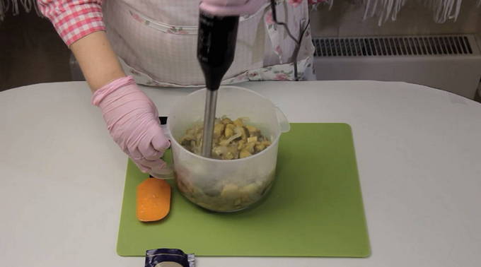 - Doe gekookte cantharellen en groente frituren in een blender, hak de ingrediënten tot een gladde massa.