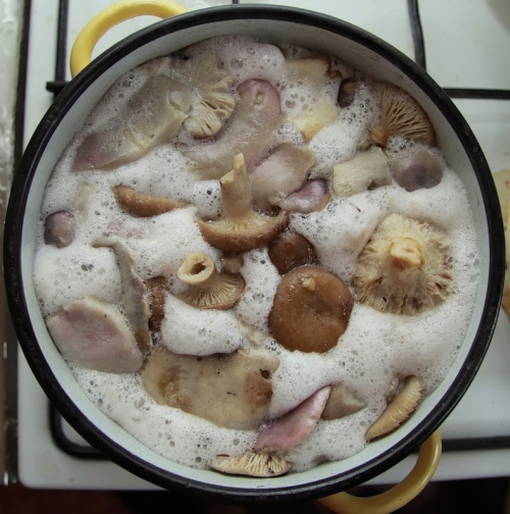 - Was de champignons, verwijder het vuil en kook in gezouten water.
