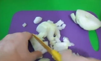 - Snijd de ui in kleine blokjes.