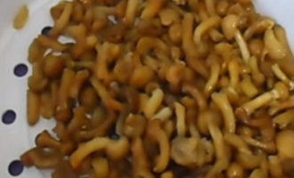 - Ontdooi de bevroren champignons in de magnetron of vergiet onder koud water.