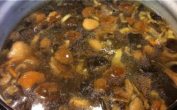 - Doe de bevroren champignons in een soeppan en giet er 3 liter koud water over.