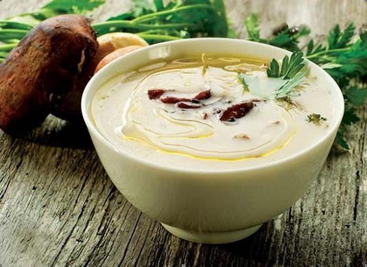 - Schenk de soep in kopjes, versier met verse kruiden, stukjes champignons en serveer met croutons of croutons.