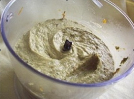 - Doe de met uien gebakken champignons over in een aparte kom en hak ze fijn met een staafmixer of in de kom van een keukenmachine.