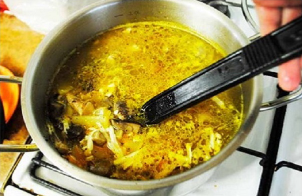 - Doe vervolgens de ontdooide eekhoorntjesbrood in een pan, bij voorkeur in middelgrote stukken gesneden. Je kunt de champignons niet ontdooien, maar meteen in de soep doen, dan wordt het lekkerder. Giet gekookt water in een pan in de hoeveelheid die je nodig hebt (ergens anders 2,5 liter) en kook de soep gaar. Bestrooi de soep met peper en proef.