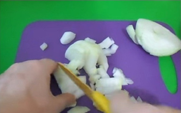 - Snijd de ui in kleine blokjes.