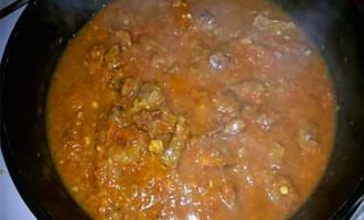 In dit recept wordt tomatenjus gemaakt met verse tomaten gecombineerd met tomatenpuree. Het gerecht heeft een heldere rijke smaak, het vlees wordt goed zacht onder invloed van het zure tomatensap.