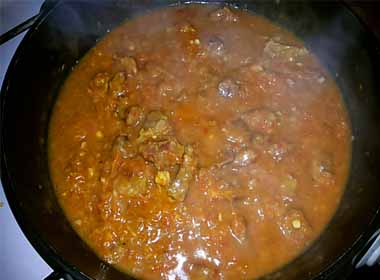 In dit recept wordt tomatenjus gemaakt met verse tomaten gecombineerd met tomatenpuree. Het gerecht heeft een heldere rijke smaak, het vlees wordt goed zacht onder invloed van het zure tomatensap.