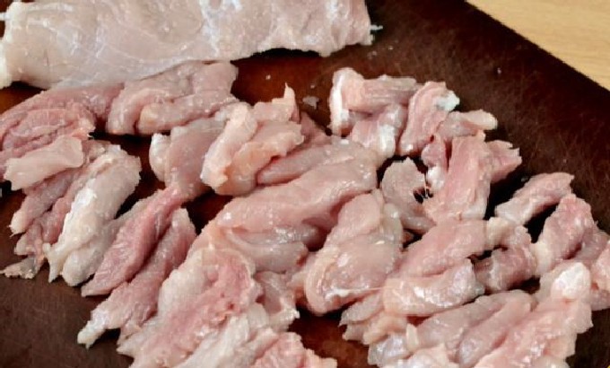 - We wassen het varkensvlees en snijden het in blokjes van ongeveer 3 * 2 cm.