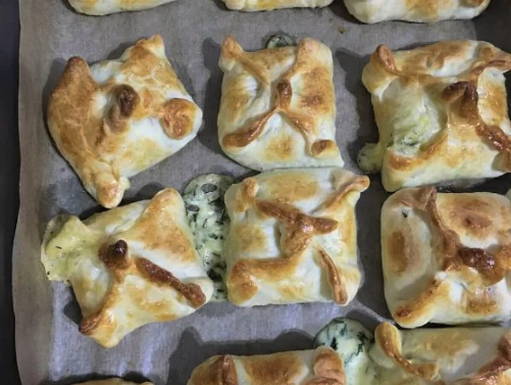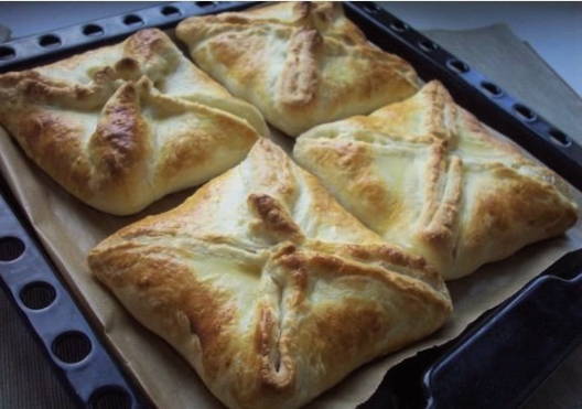 Hoe bladerdeeg khachapuri met kaas en kwark in de oven bakken?