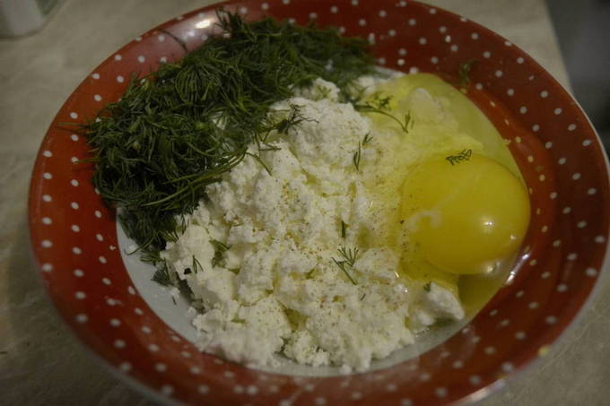 - We brengen een stuk fetakaas tot kruimels en voegen er dan een ei, een fijngehakt bosje dille en zachte boter aan toe. We malen alles goed, brengen desgewenst op smaak met gemalen peper of zout, geheel naar eigen smaak.
