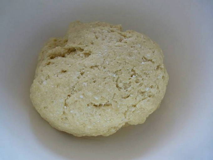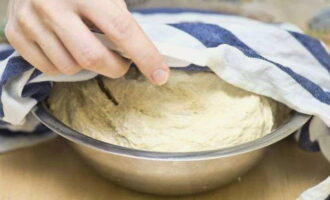 - Het deeg, goed gekneed en tot een bal gerold, wordt afgedekt met folie en daarna 1,5 uur laten rijzen zodat het in omvang verdubbelt.