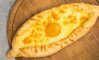 De klassieke manier om Georgische khachapuri te bereiden met een vloeibare dooier in het midden. Meestal wordt in Georgië jonge Imeretische kaas gebruikt om boten te maken, maar in andere landen is er meestal geen dergelijke kaas van hoge kwaliteit, dus wordt deze vervangen door een mengsel van Adyghe en Suluguni.