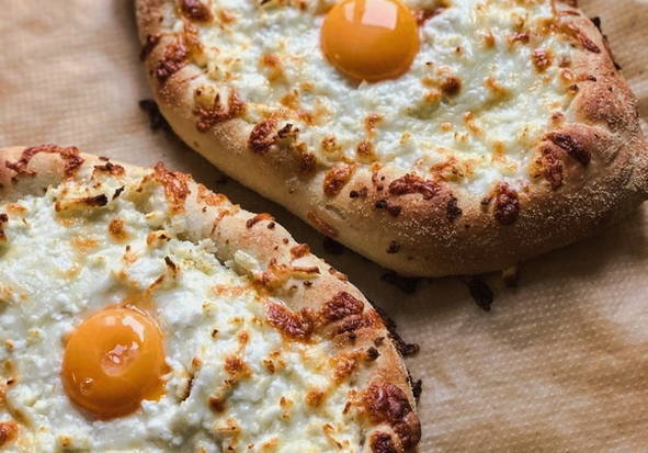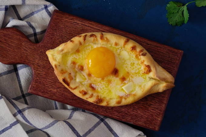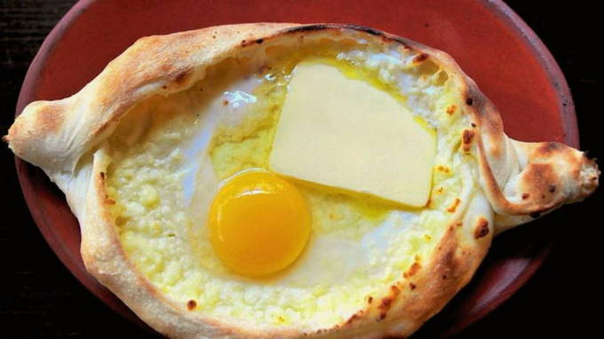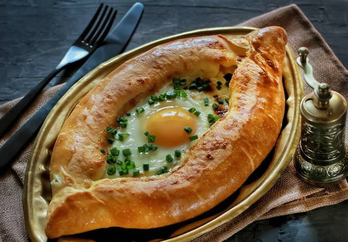In Georgië zijn er veel opties voor khachapuri - gebak met kaas en kruiden, maar een van de meest populaire is de zogenaamde "boot met een ei" - Adzjarische khachapuri. Deze versie van khachapuri wordt bereid in de vorm van een boot gevuld met kaas en een gebakken ei. Ze eten dit gerecht door een stukje lavash af te breken en in een kaas- en eiervulling te dopen.