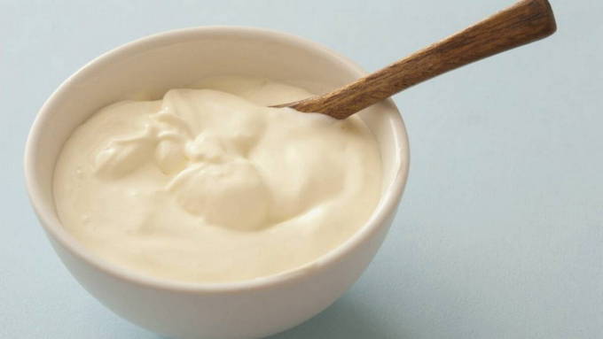 - Meng in een bak met een geschikt volume olie, zout en yoghurt, klop goed, voeg daar soda en gezeefde bloem toe. Het is belangrijk om te onthouden dat het deeg zo wordt gekneed dat het stevig en glad is.