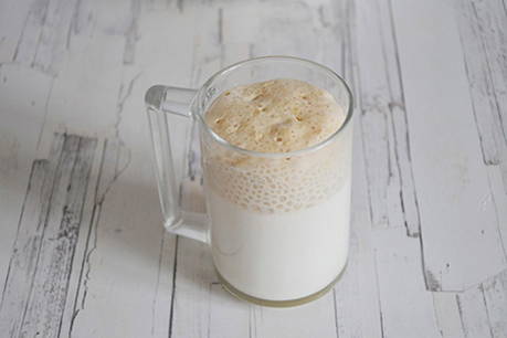 - Los de gist op in warme melk en laat het mengsel 15 minuten op een warme plaats staan.