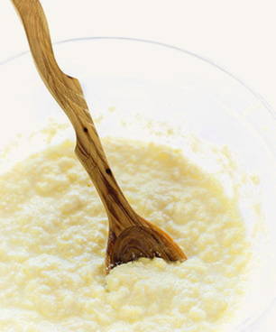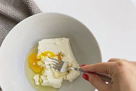 - Prak in een kom de kwark en het ei met een vork tot een gladde massa.