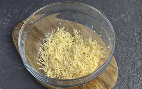 - Rasp kaas, voeg een beetje zout toe.