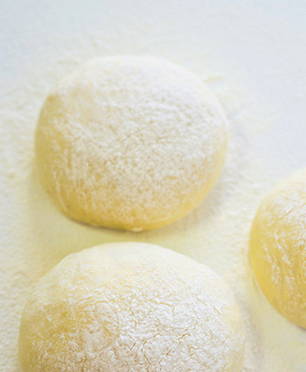- Voeg vervolgens rijstmeel toe en kneed het deeg.