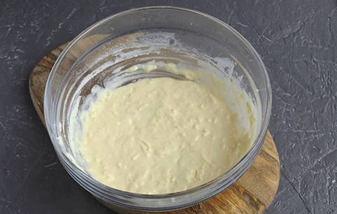 - Voeg vervolgens bakpoeder en bloem toe, kneed het deeg. Laat het 30 minuten op kamertemperatuur staan.