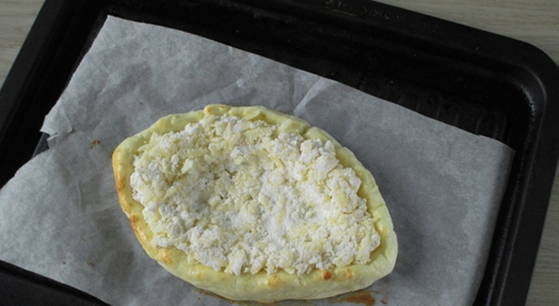 - Doe wat kaasvulling in de bootjes en plaats de bakplaat in de oven, voorverwarmd op 170-180 graden gedurende 20-30 minuten.