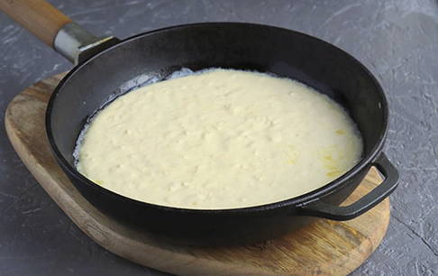 - Verwarm een koekenpan voor, giet de plantaardige olie erin en leg het voorbereide khachapuri-deeg erop.