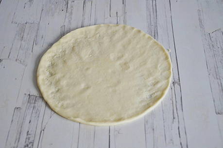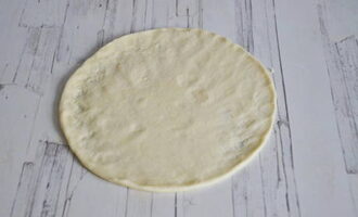 Rol elk stuk deeg uit tot een cirkel met een diameter van 18-20 centimeter.