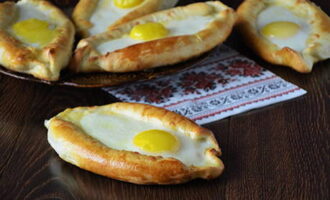 Een andere optie voor heerlijke Adzjarische khachapuri. Met gistdeeg zijn de gebakken producten luchtiger. Je kunt gistdeeg voor khachapuri zelf kneden of kant-en-klaar nemen.
