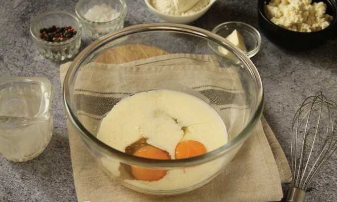 Combineer eerst de eieren met kefir. Schud ze tot ze glad zijn.
