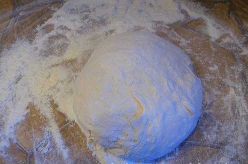 - Kneed het deeg met je handen tot een gladde en zachte bal. We laten het product 30-40 minuten onder de film op een warme plaats staan.