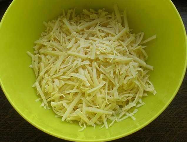- Wrijf voor de vulling de kaas op een grove of middelgrote rasp.