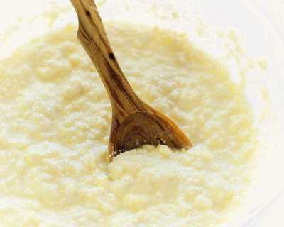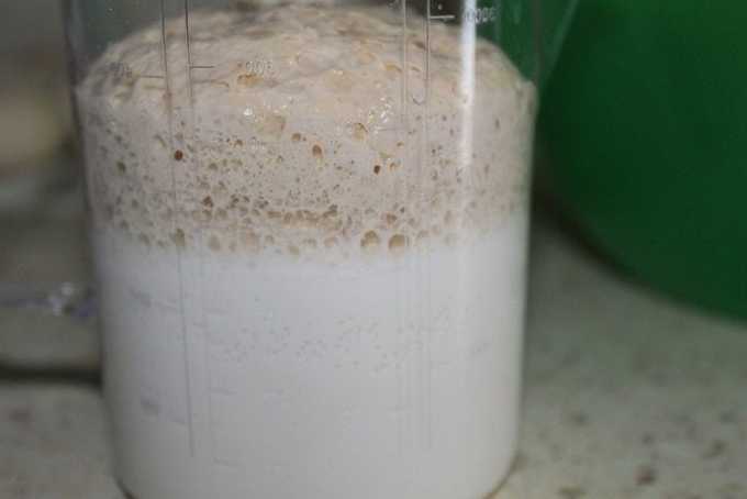 - Combineer melk en water in een diepe kom. Het eten moet warm zijn. Voeg hieraan droge gist toe, roer en laat 15-20 minuten staan.