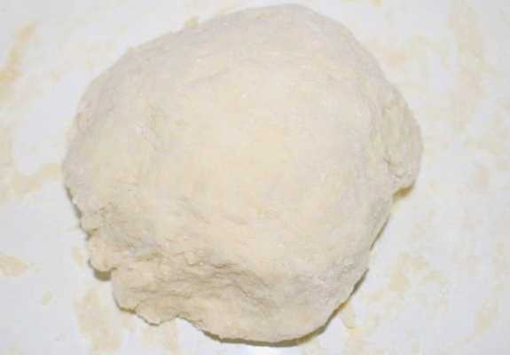 - Meng bloem met kefir, breek een ei en voeg zout en soda toe. Kneed het deeg tot een dichte en gladde klont.