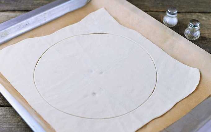 - Ontdooi het afgewerkte bladerdeeg vooraf tot kamertemperatuur. Rol zo nodig uit. Knip vervolgens een nette cirkel uit het product.
