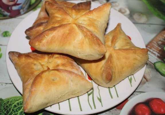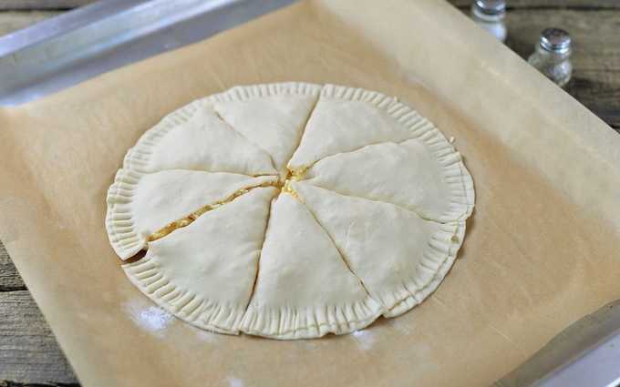 - We vouwen het gevulde deeg in een strakke envelop. Vervolgens leggen we de blanco's op een bakplaat en bakken ze 20 minuten op een temperatuur van 180 graden.