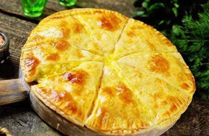 - We halen gist khachapuri met kaas uit de oven. Leg op geportioneerde borden en serveer. Klaar!
