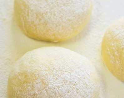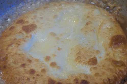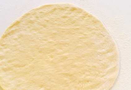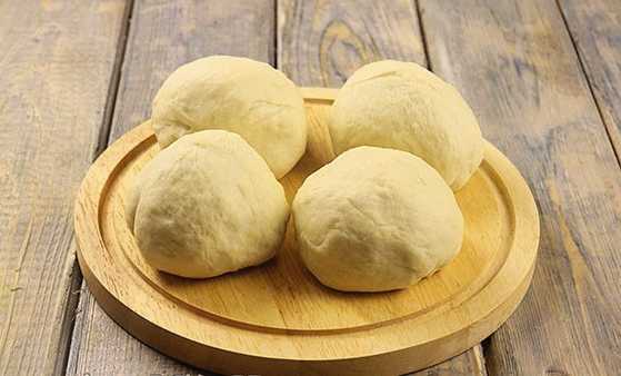 - Verdeel het kefirdeeg in gelijke stukken en rol ze uit tot dunne cirkels. We boetseren balletjes van de kaas en leggen ze in het midden van het opgerolde deeg.