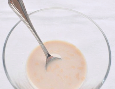 - Giet 50 ml warme melk in een bord. We voegen er suiker en gist aan toe. Roer en laat 10 minuten staan.