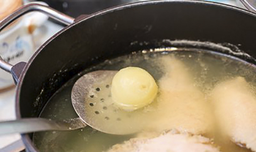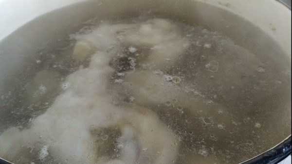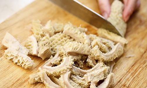 - Giet kokend water over de maag en maak hem schoon met een mes tot hij wit wordt.