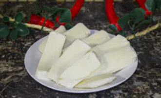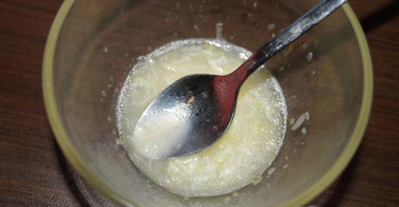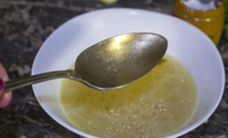 Pel de knoflook en passeer door een pers. Vul het met 300-400 milliliter bouillon, voeg azijn en zout toe. Dit wordt een dressing voor khash.